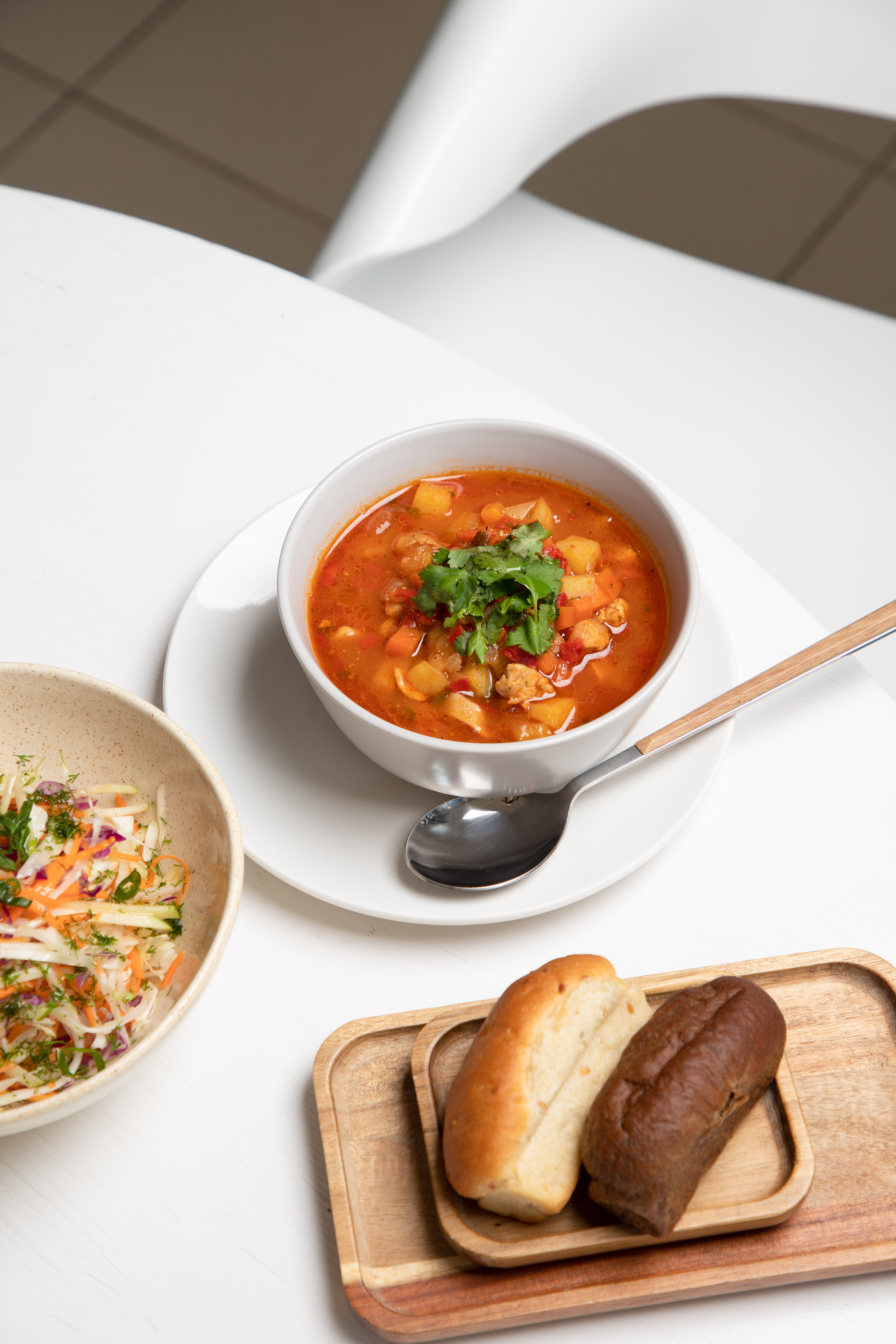 Состав: куриная грудка, картофель, лук, морковь, перец болгарский, томат, томатная паста, масло подсолнечное, бульон куриный, соль, чеснок, аджика сухая, соль адыгейская, кориандр семена, перец черный молотый, чеснок гранулированный, лапша (мука в/с, яйцо, сода, вода), кинза